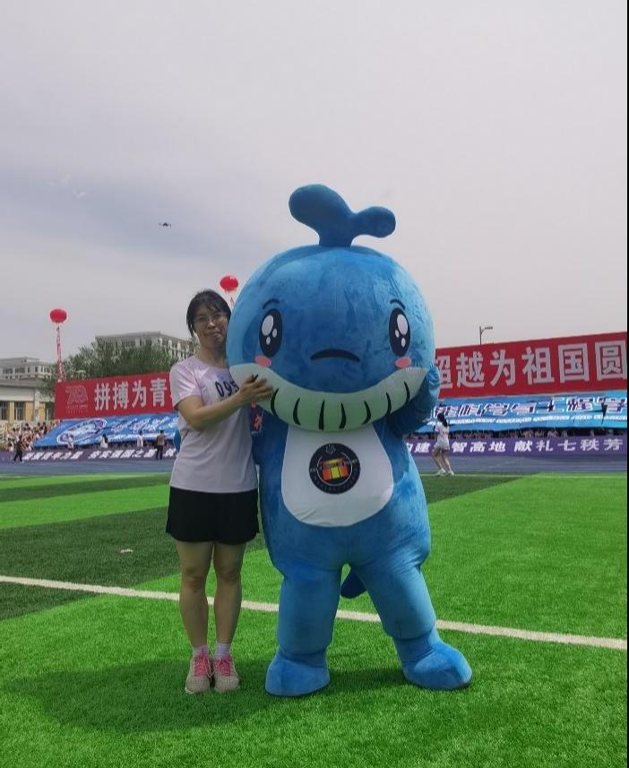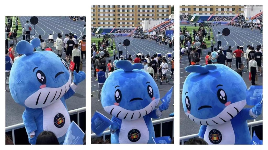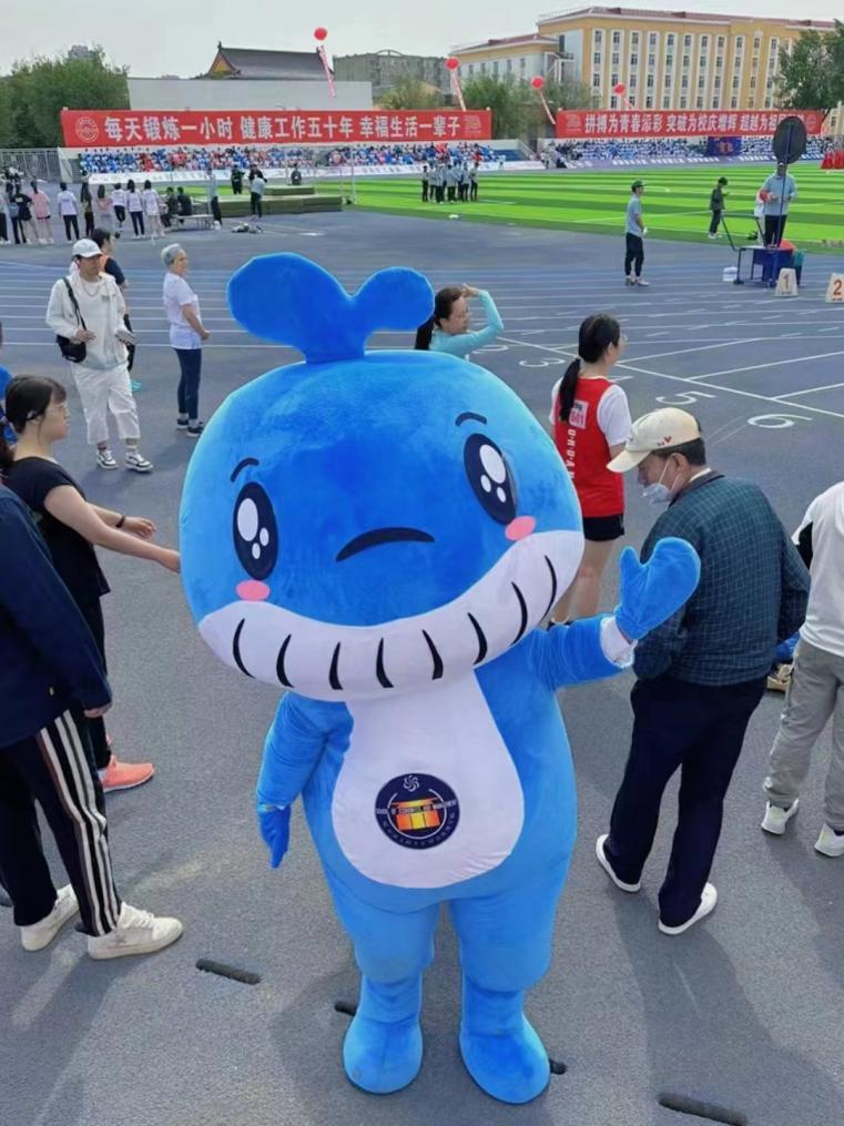 当然,在加油助威的人群中少不了我们经管学院的大明星——吉祥物鲸鲸。