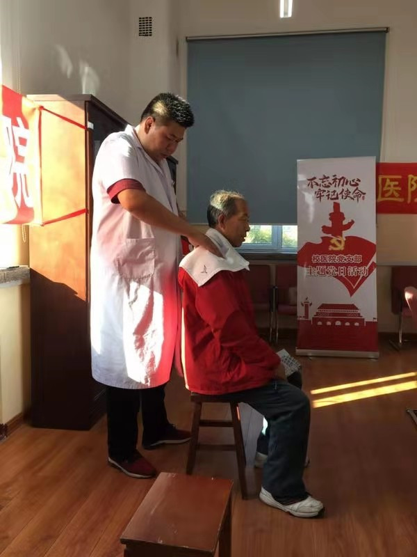 本次义诊活动由校医院党总支书记吴越带队,中医科专家高颖、内科主任马葆琛、中医科主任包舰、中医科理疗师李双阳、孙胜楠、住院处护士长何昕等,来到学院为教职工提供中医保健、诊脉辨识、理疗推拿及高血压病诊疗指导、测量血压等,引导师生养成健康生活方式。