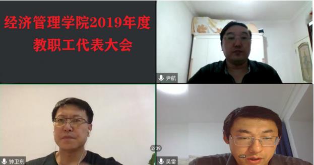 6月22日19点30分,beat365正版唯一官网必一召开2019年度教职工大会,受“疫情”影响,本年度学院教职工大会采取网络视频会议形式,学院全体教职工共计117人参加会议,会议由学院党委书记钟卫东主持。