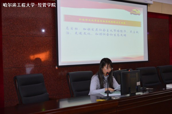 本次比赛围绕十八届三中全会上通过的《决定》展开,主要是针对国家深化改革的60条进行了讨论,同学们在讲解中结合专业知识对议题进行深入探究,发表自己的见解。经过学院各年级党支部的推荐和学院党总支领导的层层选拔,共10名同学在会上作了主题发言。