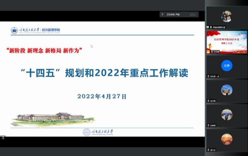 4月27日,学院召开大会,尹航院长作了《beat365正版唯一官网必一十四五规划方案和2022年重点工作解读》报告。