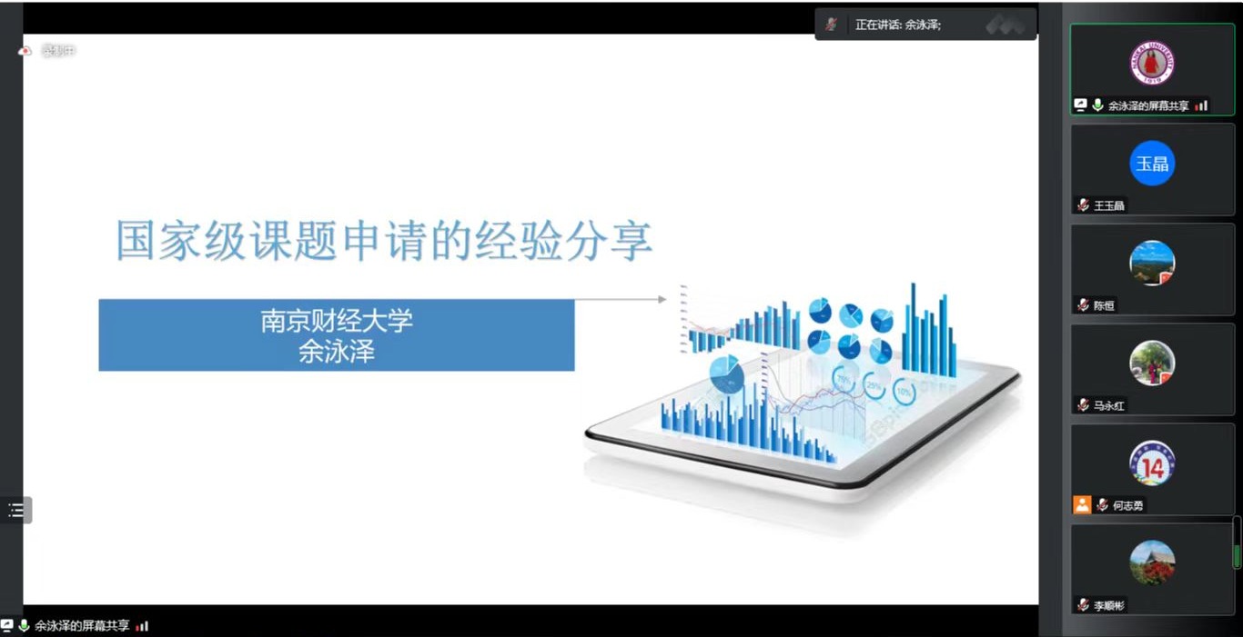 讲座历时120分钟,余教授重点就国家自科基金与国家社科基金的申报对比、申请书撰写要点和注意事项等细节进行了深入的讲解,期间马永红、李顺彬和王克达三位教师与余泳泽教授就科学问题展开的宽度与深度、社科申报指南与自身研究基础融合、课题申报辅导经验等相关问题进行了交流,余教授的讲座深入浅出、风趣幽默,参会师生收益良多。