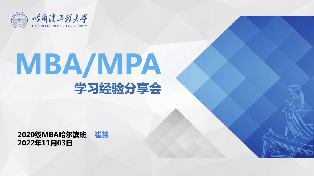 学习交流齐进步,经验分享共成长。11月3日,由学院主办的迎70周年校庆校友系列活动之MBA/MPA研究生学习经验分享会正式启动,首次分享会通过线上方式举行,2020级MBA崔赫同学分享了其研究生学习过程中的经验,特别是毕业论文撰写的心得体会。全体MBA和MPA在校生参加会议。
