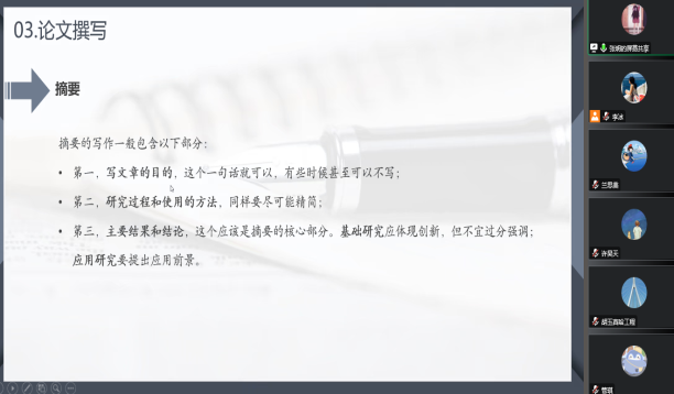讲座中,张明同学和平闪闪同学分别结合自己撰写论文和发表经历,从论文选题、文献资料的搜索阅读、论文语言的打磨、投稿期刊的选择、论文的返修、与导师的沟通等方面分享了自己的经验,同时也表示科研论文的撰写需要守住学术道德底线、沉得住心气、耐得住性子、坐得住板凳,遇到问题不要轻言放弃,要多与导师沟通交流,尝试多种角度、不同思路解决问题。