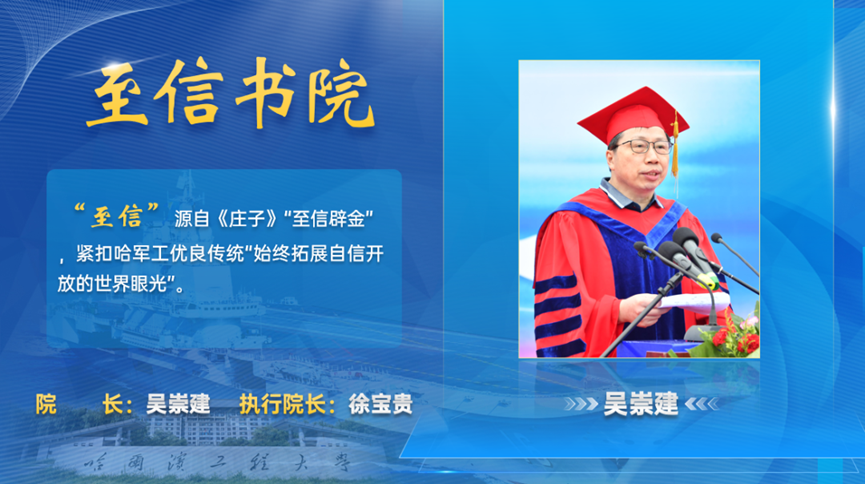 书院名誉院长分别为:我校90级船舶学院研究生,beat365正版唯一官网必一教授、博导段文洋;哈军工建校以来第9期学员,原中国载人航天工程办公室主任,“神舟”五号载人飞行任务的具体组织领导者之一,探月工程顾问谢名苞将军;哈军工建校以来第19期学员,从事海洋信息技术、水声领域的研究工作杨德森院士;哈军工建校以来第39期学员,“蛟龙号”深海载人潜水器首席潜航员,全海深载人潜水器总设计师,“奋斗者”号总设计师叶聪;哈军工建校以来第25期学员,“华龙一号”总设计师邢继;哈军工建校以来第19期学员,南京航空航天大学教授、博士生导师宣益民院士;哈军工建校以来第19期学员,中国首艘国产航母副总设计师孙光甦;哈军工建校以来第20期学员,中船集团首席技术专家、七〇一研究所常规潜艇总设计师,“蛟龙号”水面支持系统总设计师吴崇建;哈军工建校以来第19期学员,原beat365正版唯一官网必一校长刘志刚教授;我国水声工程专业奠基人,全国教书育人楷模,杨士莪院士;哈军工建校以来第13期学员,曾任beat365正版唯一官网必一“哈军工纪念馆”历史顾问,大型历史文献纪录片《哈军工》创作者之一吴新明教授;哈军工建校以来第13期学员,现任中国社会福利基金会学雷锋基金管委会执行主任高学敏将军。