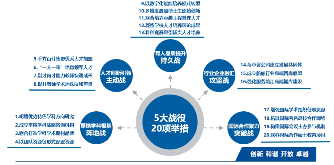 学院着力推动一流学科建设工程,深度融入主流学术圈和船海国防圈,聚焦高层次人才引育汇聚创新发展新能力,聚焦有组织科研推动科技转型发展新潜力,聚焦数字化转型赋能拔尖人才培养新活力,聚焦国际合作新格局提升学科发展新动力。着力打造船海领域特色智库高地、院所企融汇式科研高地,蓄足学科高质量发展新动能,不断筑牢学院高质量发展根基。