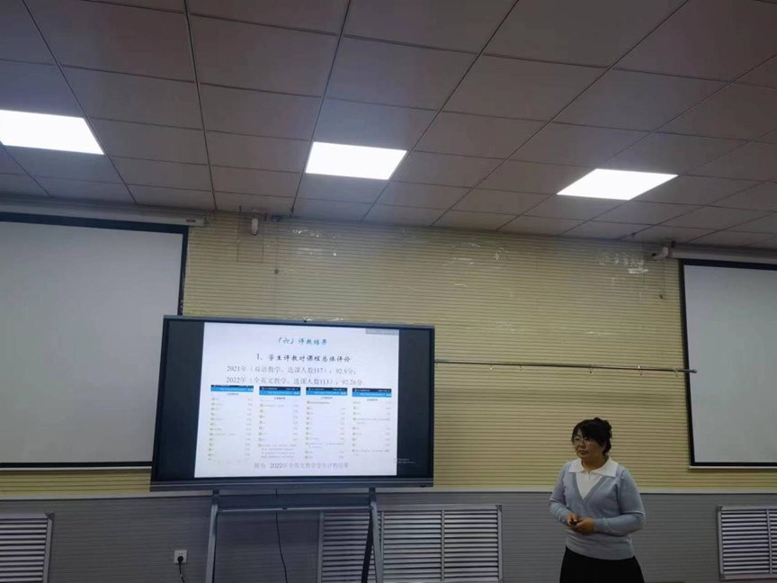 孙立梅副教授主讲的《金融计量学》是为适应金融前沿发展趋势、我国金融工作需要以及我校国际化发展目标而设置的技术方法类课程。课程是金融学专业必修课程,主要面向大学三年级本科生开设。课程基于SOBOC思政教学理念,通过三个方面促进全英文技术方法类教学效果:(1)环境营造:课程营造了全英文应用下,以教师为引领、以学生为主体,互助、互学、互评的课程推进与思政教学环境;(2)驱动个体行为:以实际金融问题为引领,激发学生内在学习动力,融入专业学习、思政问题研究;(3)重视成果导向与输出:鼓励学生在课上积极表达观点、思想,全英文呈现专业知识和思政学习成果,有效发挥榜样作用,带动学生深入探讨专业知识、提出思政问题的解决对策,形成案例分析报告、竞赛作品、科研成果等成果。课程逐步实现学生知识、能力、思政的同步推进以及教学效果的提升。