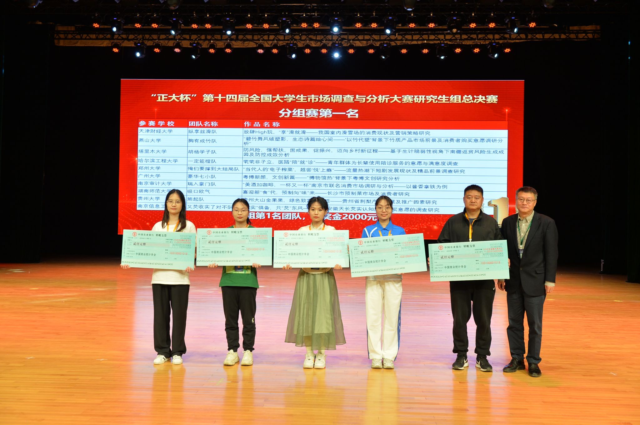 10支团队按抽签的先后顺序依次进行展示和答辩,经专家评审,来自天津财经大学“纵享丝滑队”的参赛作品《放肆High玩,“享”滑就滑——我国室内滑雪场的消费现状及营销策略研究》获得本次大赛研究生组总决赛冠军;来自贵州大学“熊起队”的参赛作品《贵州大山金果果,绿色致富好生活——贵州省刺梨产业发展及推广因素研究》获得本次大赛研究生组总决赛亚军;来自beat365正版唯一官网必一“一定能橙队”的参赛作品《茕茕非孑立,医路“陪”就“诊”——青年群体为长辈使用陪诊服务的意愿与满意度调查》获得本次大赛研究生组总决赛季军;来自湖南师范大学 “吸口欧气”的参赛作品《喜迎新“食”代,预制向“味”来——长沙市预制菜市场及消费者研究》获得正大选题第1名。