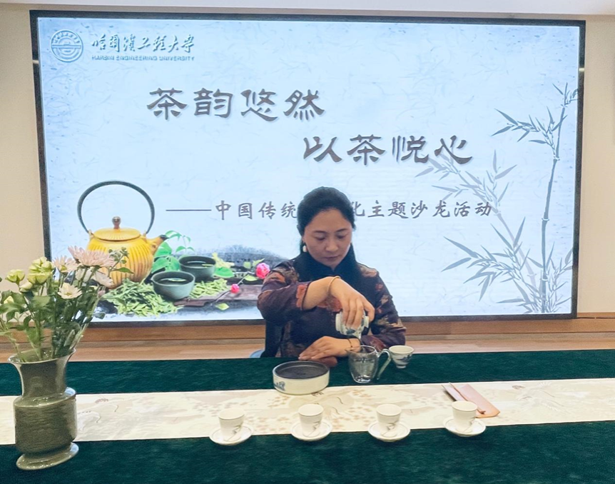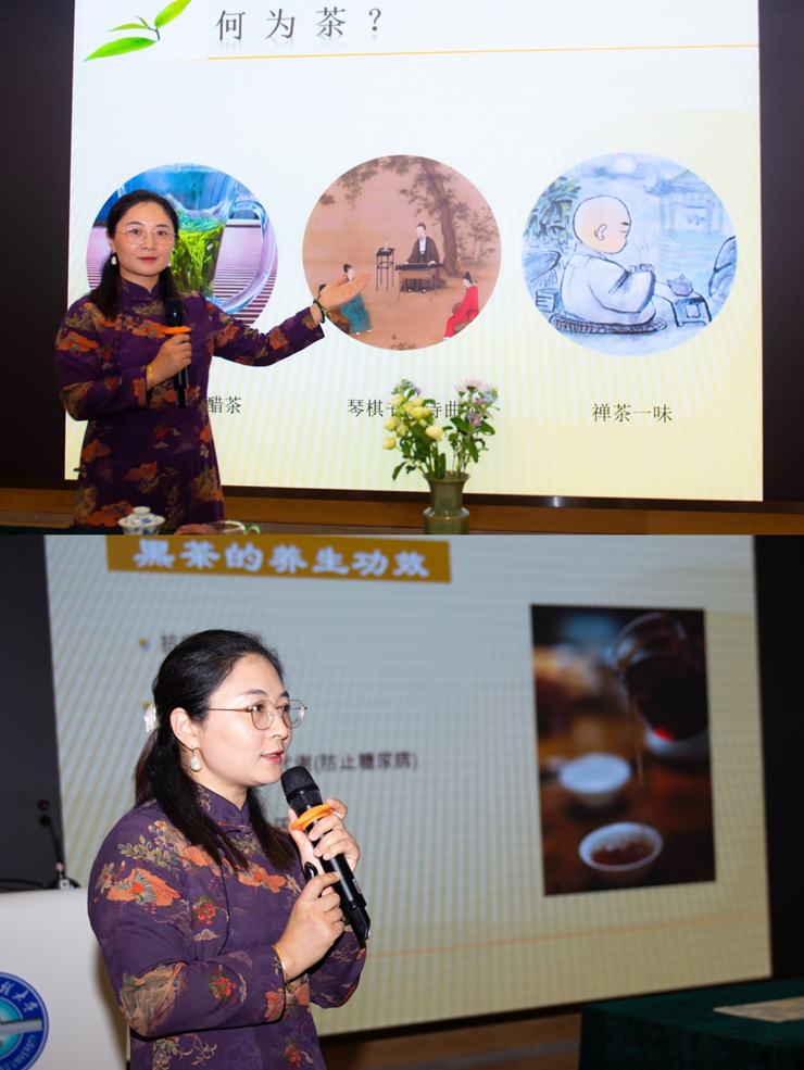活动中,尹纪美为大家带来了茶文化的科普分享,她详细介绍了茶的起源、分类以及不同茶类的特点与功效。通过生动有趣的讲解,不仅开拓了同学们的视野,也帮助同学们进一步加深了对中国茶文化的了解。尹纪美还从专业角度介绍了茶文化背后的礼仪以及在商务场合中的重要作用,鼓励大家将茶文化融入日常生活和工作中,以茶论道、以茶会友。