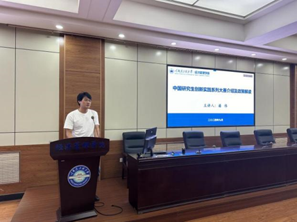 随后,潘伟介绍了中国研究生创新实践系列大赛的整体情况,并从参赛背景、参赛对象、参赛方式、比赛赛制以及作品要求等方面进行详细深入的解读。他鼓励学生,要以专业导向为主,将学术科研同创新竞赛联系起来,双向优势互补,对于学术能力提升以及创新思维培养有很多帮助。