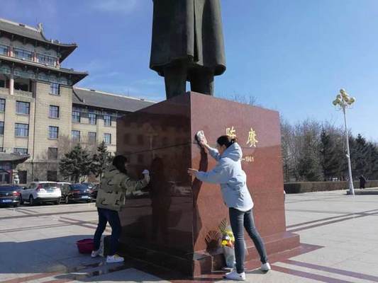 活动中,志愿者们首先对陈赓像底座大理石板进行擦拭,在擦拭过后,参加此次活动的全体成员怀着对先辈的敬仰进行了献花活动。全体敬献鲜花、花篮,并在祭扫仪式上发言,讲述了陈赓将军的生平事迹及伟大精神,成员纷纷表示,在清明节来临之际,我们要传承中华民族传统文化,用军工人的文化自觉去挖掘学校的历史,不忘初心,继续前行!