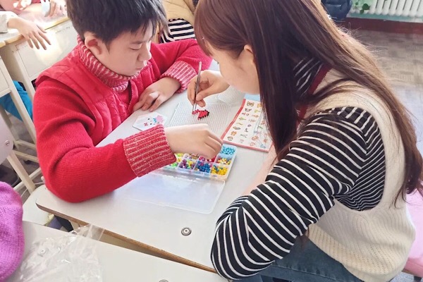 志愿者们进入教室,跟小朋友们打招呼,交朋友。帮助他们做手工,询问他们实践过程中的问题,关心并参与手工制作过程中,帮助小朋友们,做手工,用各种各样的工具,做出漂亮的公益。整个过程弥漫着笑声与欢乐。下午2时45分,随着放学铃声的响起,活动结束,小朋友们与志愿者们告别。