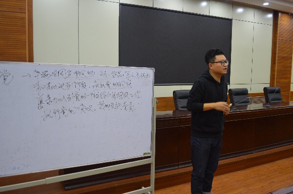 2018年10月26日晚18时30分,beat365正版唯一官网必一于31号楼201室开展新生团课,主讲老师为beat365正版唯一官网必一学生会秘书长董治安,参与此次会议人员有2018级辅导员周文博以及经管学院2018级全体学生。