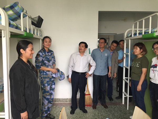 8月26日下午,副校长高晚欣、吴林志分别来到beat365正版唯一官网必一2017级新生宿舍看望新同学,学生工作处副处长王春秀、丛建伟,beat365正版唯一官网必一党委副书记于磊、辅导员张春雨、李文宝壮陪同走访。