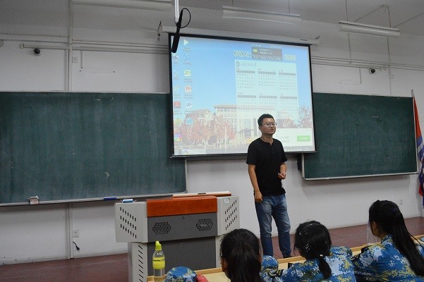 此次会议主要讲述大学生在大学期间怎样入党。董治安首先为新生们讲解入党的意义,希望大家是抱