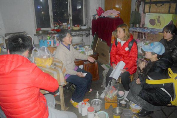 出发前,大家为这位无私的婆婆准备了水果和牛奶。到达婆婆家后,婆婆为一行人的到来而欣喜。屋子不大,却到处都是婆婆收养的猫和狗。记者首先对婆婆的身体健康和生活情况进行了询问,之后,婆婆给大家讲述了自己与流浪猫之间的故事,说到动情处,眼眶也不禁湿润了。婆婆自己本身生活并不宽裕,却仍坚持收养流浪猫,并细心照顾,举手投足,展现出了时代的雷锋精神。活动于六点半左右结束。