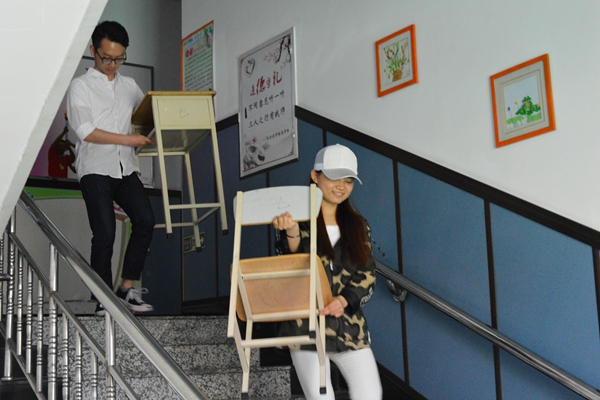 抵达燎原小学后,老师向志愿者们分配任务,主要是将部分教室桌椅搬到一楼,为日后的开展助残日活动做准备。于天一部长将志愿者们分为三组,分别负责二楼到四楼教室桌椅的搬运工作,在志愿者们齐心协力下很快将任务完成。本次活动于上午11时30分结束。