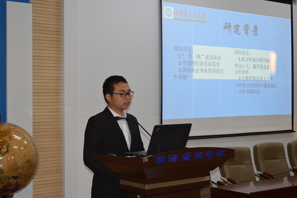 各选手到场后,首先以队伍为单位进行签到,由签到顺序决定上场顺序。每队选手有四分钟的时间,以ppt的形式展示自己对所选课题的研究成果。各队需在规定时间内完成展示,超时将影响比赛成绩。随后,评委针对论文内容及选手们在答辩中的表现做出点评并打分,指导其进一步完善论文。