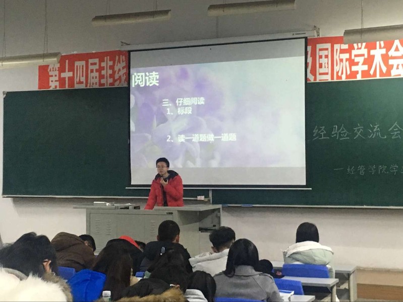 首先,大家观看了学子论坛宣传视频,了解了学子论坛的主要工作和工作目的。接着,陈晨为大家介绍了四级考试的时间安排和考试流程,分析了试卷结构和分值比例,讲解了各类型作文和听力的答题技巧。然后,王可嘉和大家分享了阅读和翻译的答题技巧及注意事项。最后是观众提问环节,两位耐心细致地回答了同学们对四级考试的各种疑惑,解决了大家最关心的问题。