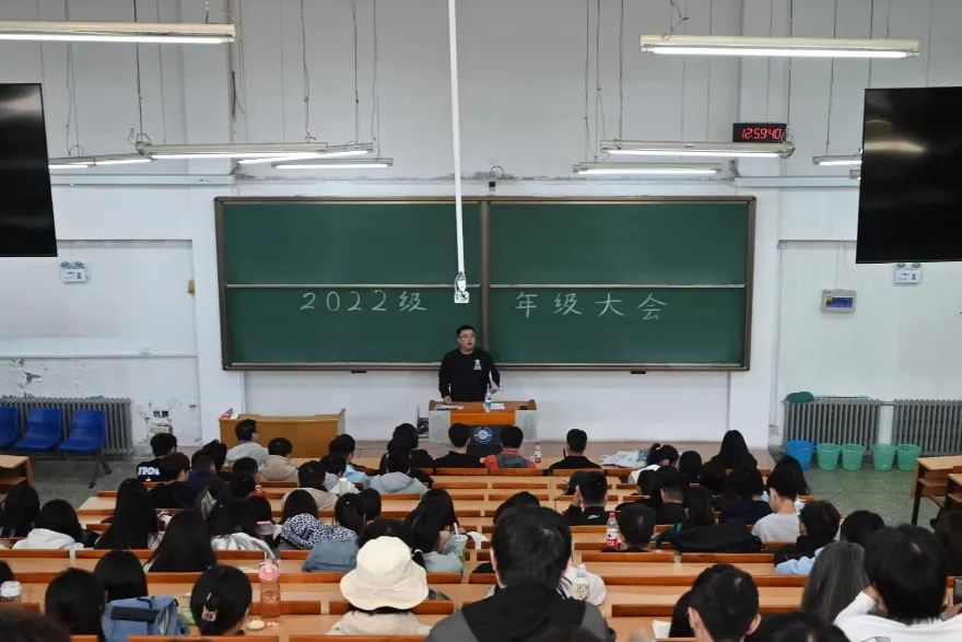 2023年10月11日上午12点,beat365正版唯一官网必一2022级全体本科生在逸夫楼召开新学期年级大会,197名学生齐聚一堂,新学期、新气象,已顺利度过大一新生期的2022级学子们即刻开启全新的大学生活。