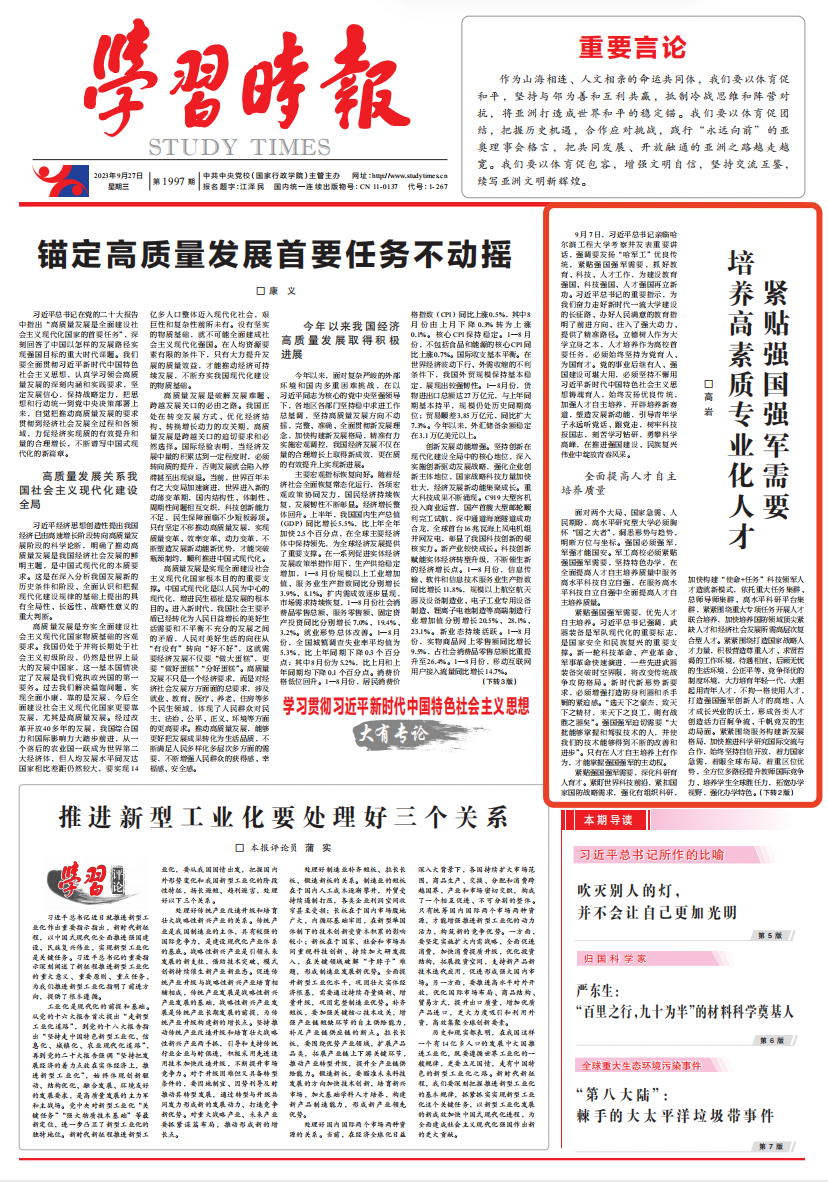 编者按:9月27日,《学习时报》头版刊发了beat365正版唯一官网必一党委书记高岩同志题为《紧贴强国强军需要 培养高素质专业化人才》的文章。文章提出,习近平总书记亲临beat365正版唯一官网必一考察并发表重要讲话,为奋力走好新时代一流大学建设的长征路指明了前进方向、注入了强大动力、提供了精准路径。70年来,一代代哈军工传人,倍加珍视哈军工荣誉,在强国强军的伟大征程中,生动诠释以想的是党、为的是国、强的是军为内核的“六个始终”哈军工精神并不断发扬光大。新征程上,要坚持不懈用习近平新时代中国特色社会主义思想铸魂育人,始终发扬优良传统,加强人才自主培养,开辟培养新赛道,塑造发展新动能,为强国建设、民族复兴伟业再立新功。